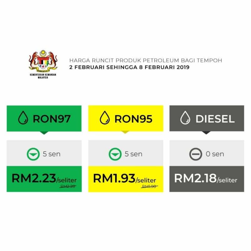 Menteri Kewangan Lim Guan Eng mendedahkan harga runcit petrol RON97 akan turun kepada RM2.23 seliter, manakala RON95 turun kepada RM1.93 seliter.