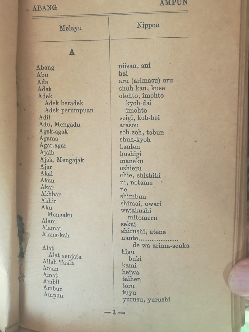 “Kamus ini dikeluarkan sekitar tahun 1941 hingga 1943 ketika bandaraya ini sudah ditakluki tentera Jepun. Saya belum lahir ketika itu dan kamus sebelum ini milik datuk saya. Bila datuk saya sudah meninggal, saya telah menemuinya dalam almari dalam rumah lama sebelum dirobohkan,” katanya.