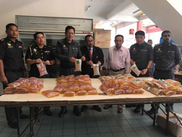 MIRI, Mac 8: Kementerian Perdagangan Dalam Negeri, Koperasi dan Kepenggunaan (KPDNKK) Sarawak telah merampas 103 paket minyak masak dalam satu Ops Goreng di sebuah kedai menjual makanan laut di sini hari ini.