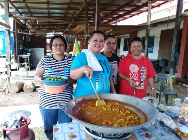 While the men sat in the ‘ruai’ discussing with Bomba officers about setting up their own volunteer firefighting team, the women were busy in the spacious outdoor kitchen preparing lunch for their guests.