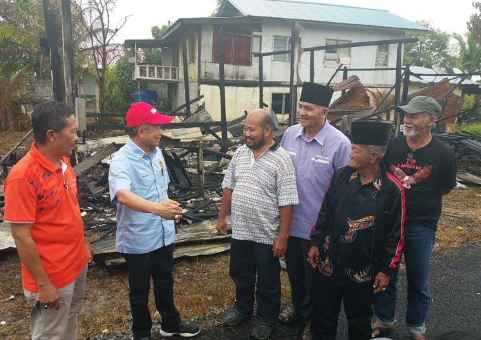 GEDONG, Sept 19: Ahli Dewan Undangan Undangan Negeri (ADUN) Gedong, Datuk Mohd Naroden Majais mengumumkan akan membantu menampung kos membina semula rumah Sari Mohd Ghani, 56, dianggarkan sebanyak RM20,000 yang musnah akibat kebakaran di Kampung Lalang, di sini, baru-baru ini.
