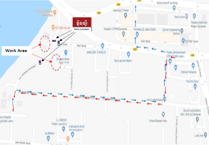 “Additionally, road users may also use Satok Lane 21, Lorong Satok 27 to Jalan Suspension Bridge,” said Sarawak JKR.