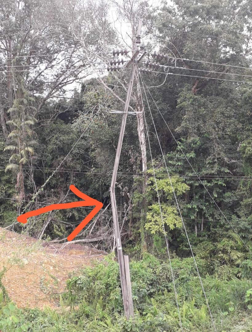 At Enteban, an overhead line pole cracked and almost fell to the ground after being knocked by a lorry. At Lubok Antu Junction and Pentik, emergency shutdowns were necessary to repair slanted electricity poles due to the same cause, posing a danger to the public, especially road users.