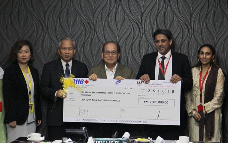 After the press conference, Uggah handed over RM2.3 million to the Sri Maha Mariamman Temple Committee for the construction of its multipurpose hall, new temple building and road access to the temple in Batu Lintang.