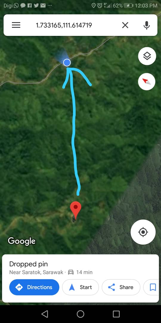 Ketua Balai Bomba Saratok, Nazry Mohamat, berkata jarak perjalanan ke lokasi tempat mangsa ditemui ialah kira-kira 3 jam berjalan kaki.