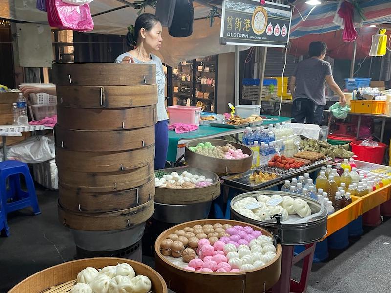 Sibu Night Market, buns, night stalls